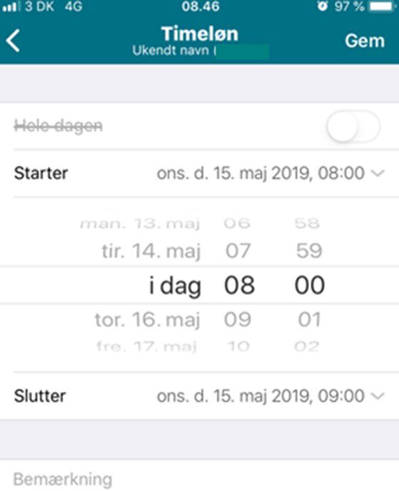Kalender til at angive arbejdstid i Minløn