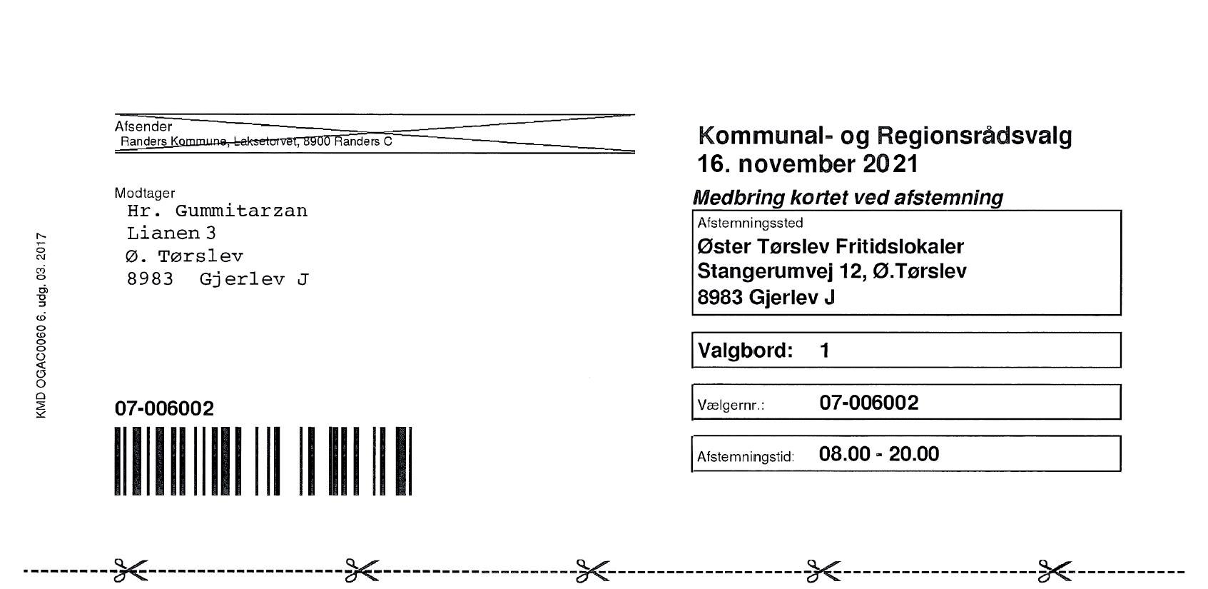 På dit valgkort står også et valgbordsnummer. Da Randers Kommune har digitale valglister, kan du dog gå til lige det valgbord, du vil, uanset hvad der er anført herom på dit valgkort.