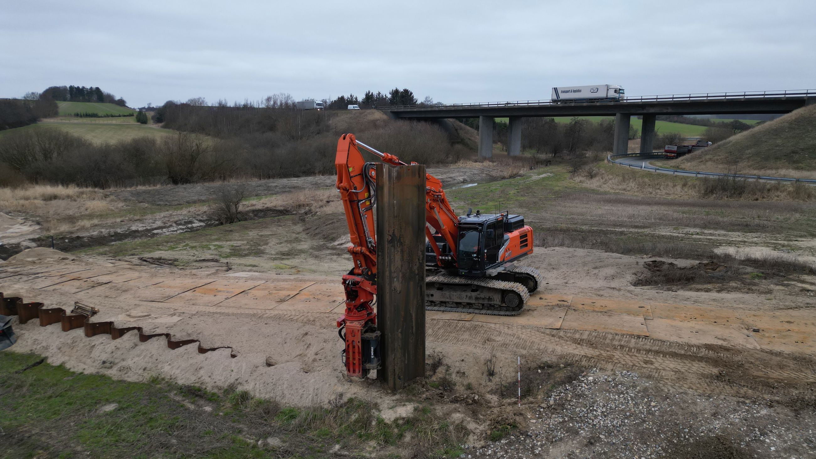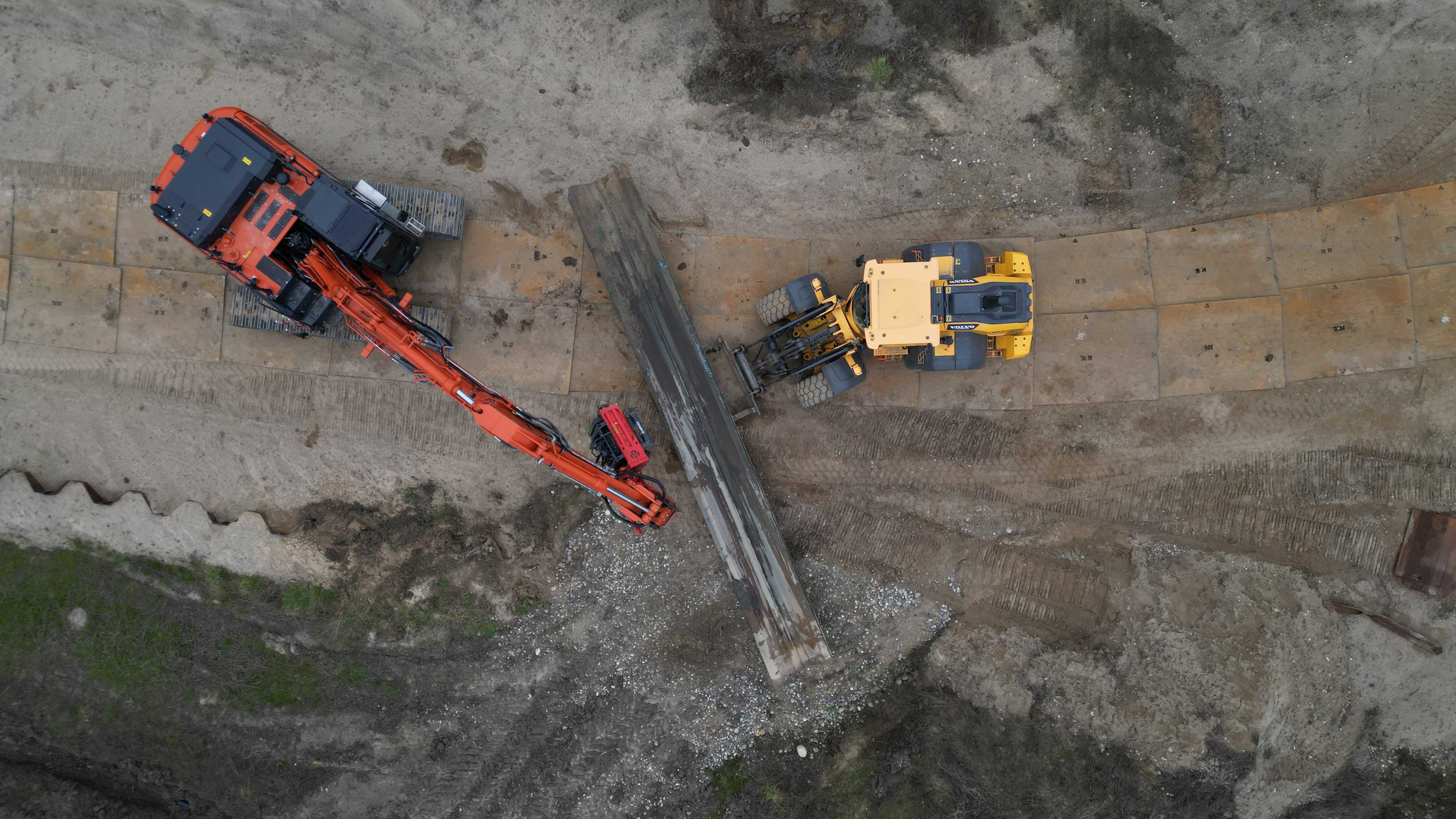 - De begynder med at klargøre området til kørsel, ved blandt andet at lægge køreplader ud