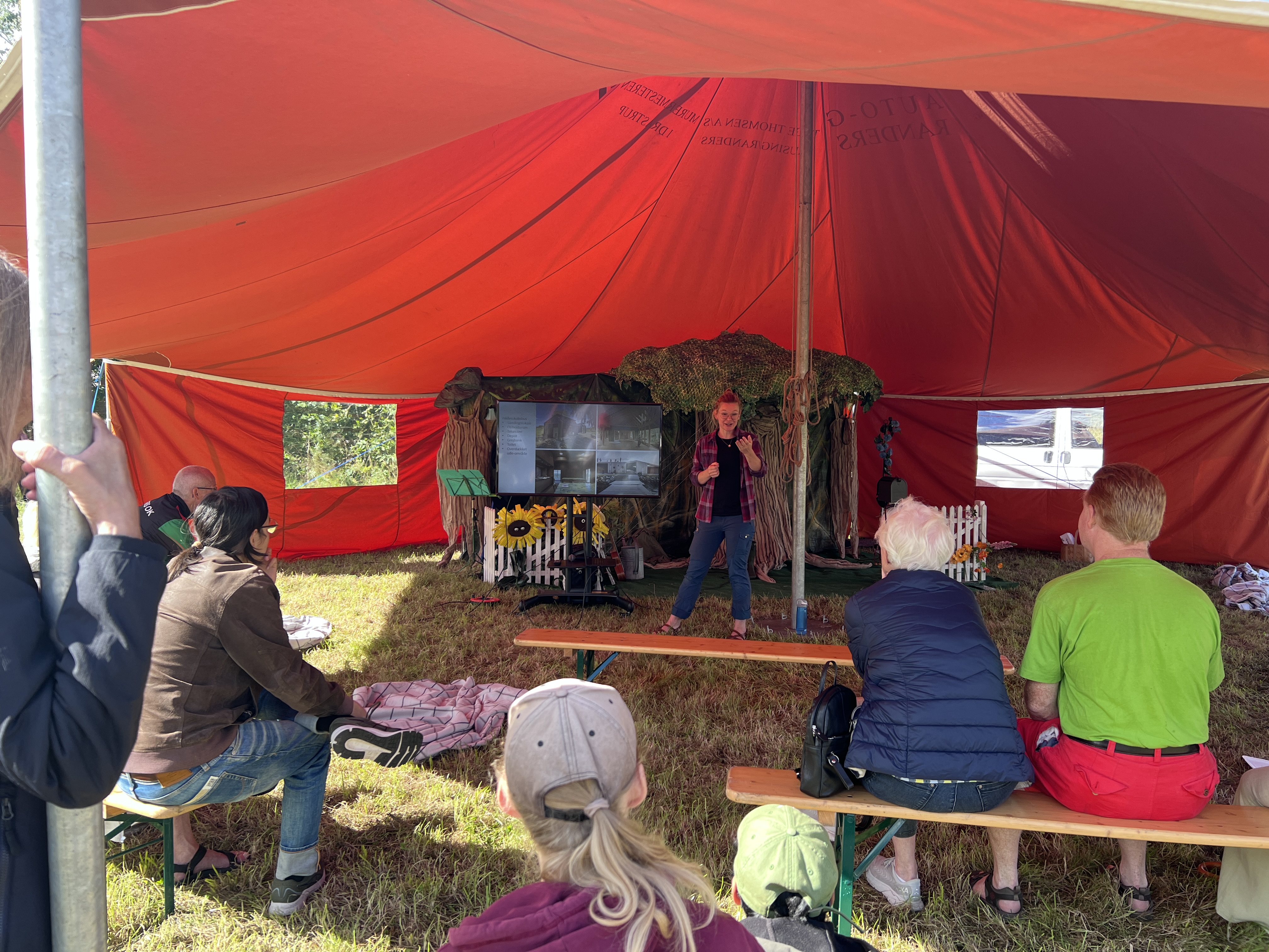 Naturfestival med græs, bål og telte.