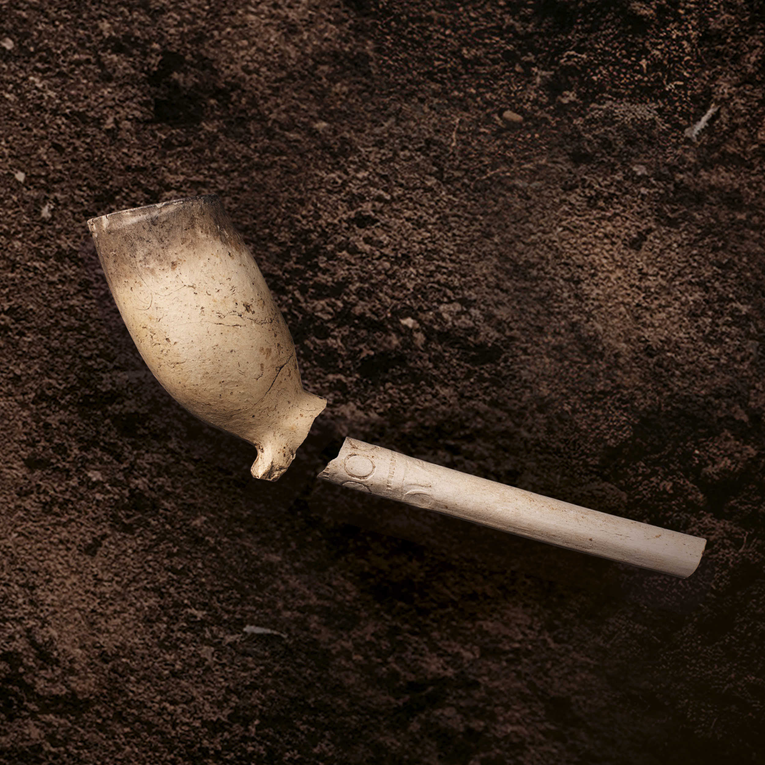 Kridtpibefragmenterne er fundet i Kirkegade 1 i udgravningen af et kampestensfundament fra en mere end 300 år gammel bygning.