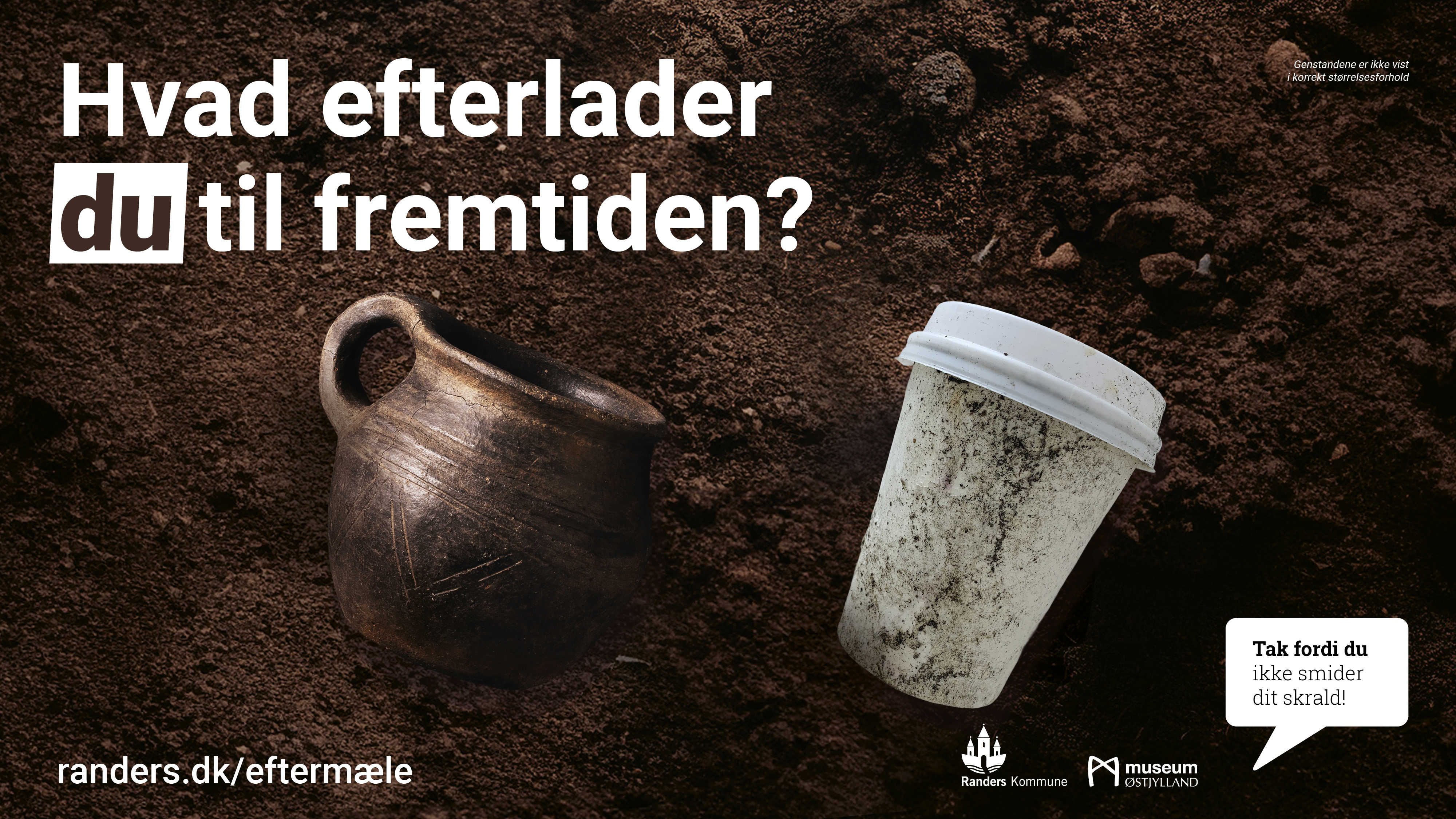 Det spørgsmål er især vigtigt for Museum Østjylland. Derfor er de gået med i kampagnen, der viser arkæologiske fund side om side med skrald fundet i naturen.